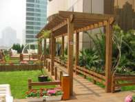 防腐木大家比較的熟悉,是一種經(jīng)常被大家采用的木材,它經(jīng)過了特殊的制作工序,使其具有出色的耐用性,在面對(duì)外界環(huán)境的時(shí)候,防腐木的表現(xiàn)也是非常的好,那么防腐木建造屋頂花園的話,效果怎么樣呢?